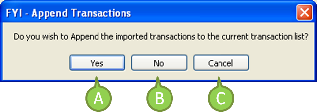 You can import transactions as a new list of transactions or you can import transactions and have them appended to the current list of transactions. If you have transactions in the transaction list the AQS QA Transaction Generator will ask if you wish to append the transactions to the current transaction list.