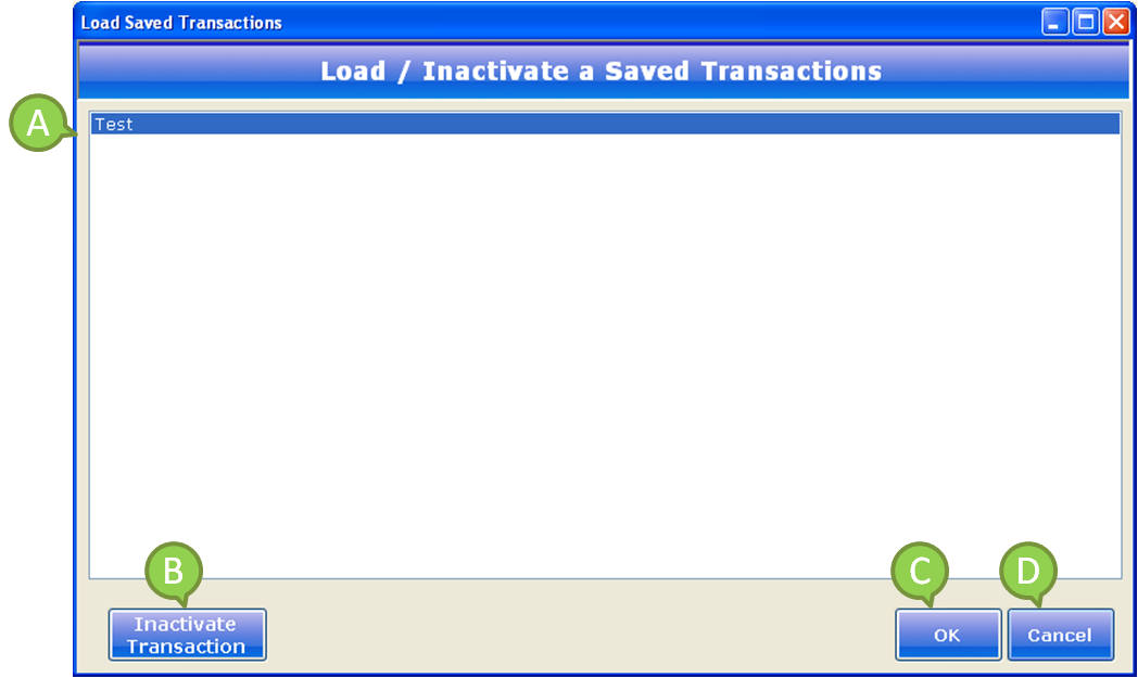 You can reload a previously saved list of transactions and/or inactivate a previously saved transaction list. Deactivating a previously saved transaction list will remove it from the list of active transactions, it will not be permanently deleted. You can reactivate or permanantly delete the previously saved transaction list using the Manage Saved Transactions from the main menu.